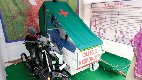 The administration has introduced motorcycle ambulance service in areas where normal ambulances cannot reach for lack of roads.