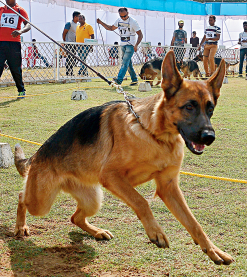 A show dog on the opening day of the All Breeds’ Championship at Unit-I in Bhubaneswar on Friday. Picture by Ashwinee Pati