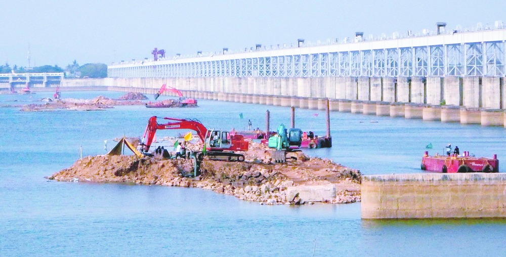 An official of the Mahanadi barrage division said that during the construction of the new anicut, dismantling of the old structure was done in front of 16 of the total 95 sluice bays of the new barrage. Immediately after operation of the barrage, formation of shoals in the upstream pond and increased sediment inflow to the irrigation canal was observed. After experts recommended dismantling and removal of the old structure as a remedial measure, dismantling of the old anicut in front of 36 sluice bays was undertaken during 2003-2005.