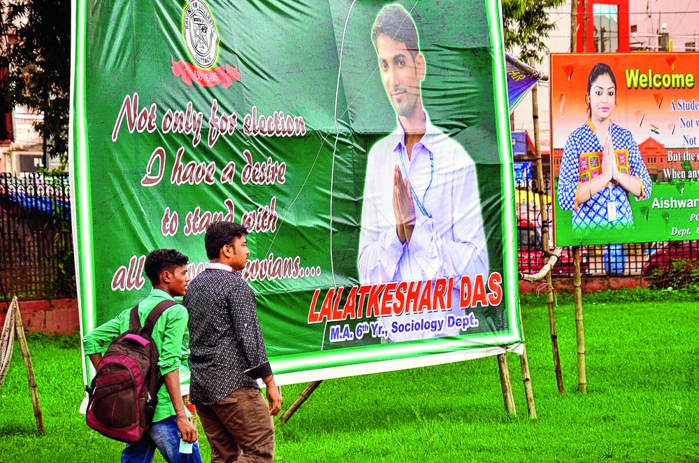 "A lot of candidates have put up banners and posters on the campus. We hope that the elections passes off peacefully as there has been no incidents of violence," said Priti Swain, a student.