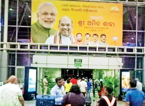 Bhubaneswar: Authorities of Biju Patnaik International Airport on Monday served a show cause notice to an advertisement agency for putting up posters of BJP president Amit Shah during his visit to the state on Sunday.
