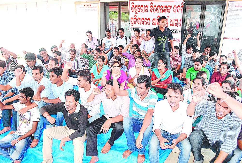Most of the faculty members and non-teaching staff had to stand outside the college building till late afternoon. The MBBS students have called for an indefinite class boycott following the transfer of two paediatric department faculty members including the head of the department Narendra Nath Soren to Sishu Bhavan in Cuttack. They are demanding the immediate cancellation of the transfers till the final MBBS examination.