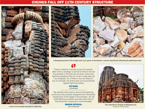Odisha State Archaeology fixes lightning arresters on monuments that are more than 50ft high. There are 218 monuments that the state archaeology manages and in view of the latest incident it has been decided to review the lightning protocol.