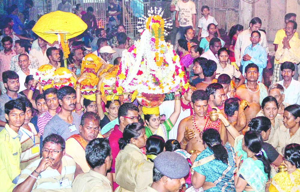 "I am happy to see everything go peacefully by the grace of the goddess. I thank the district administration, police and the visitors for their co-operation," said P. Durga Prasad, who played the role of the goddess' father during the festival.