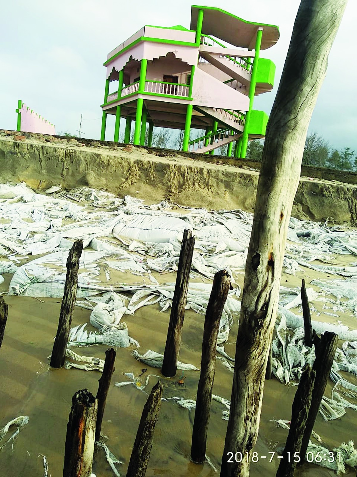 The block administration has initiated temporary measures to arrest sea erosion. Sandbags and bamboo pole stumps are being put in place to stop the advancing sea, said Erasama block development officer Kailash Chandra Behera.