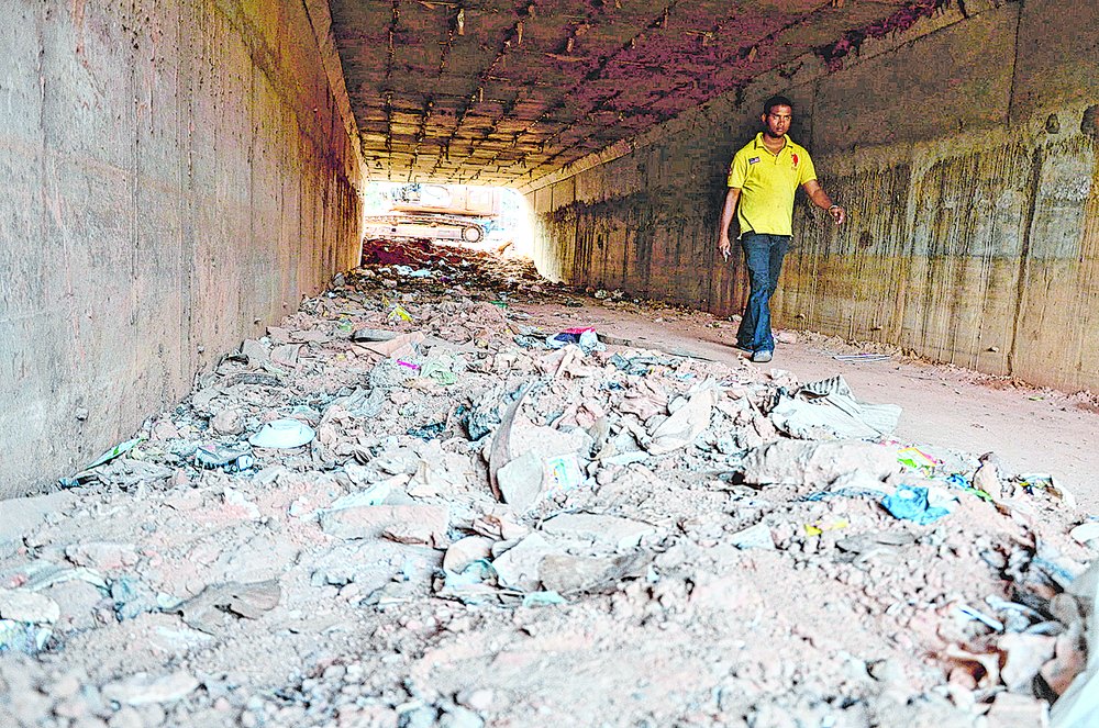 Incomplete underpass near fire station in Bhubaneswar. Picture by Ashwinee Pati