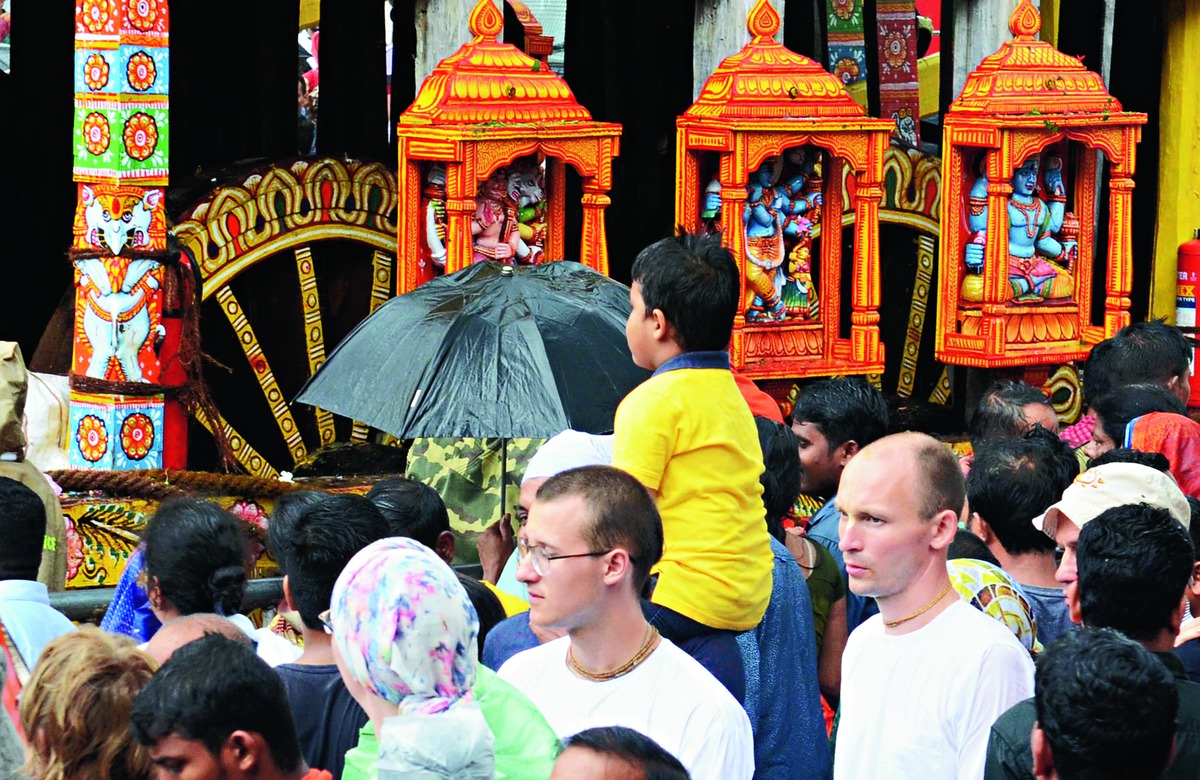Puri: It was still raining at midnight but nothing deterred the spirit of devotees who came near the chariots to get a glimpse of Lord Jagannath and his siblings on their mounts.