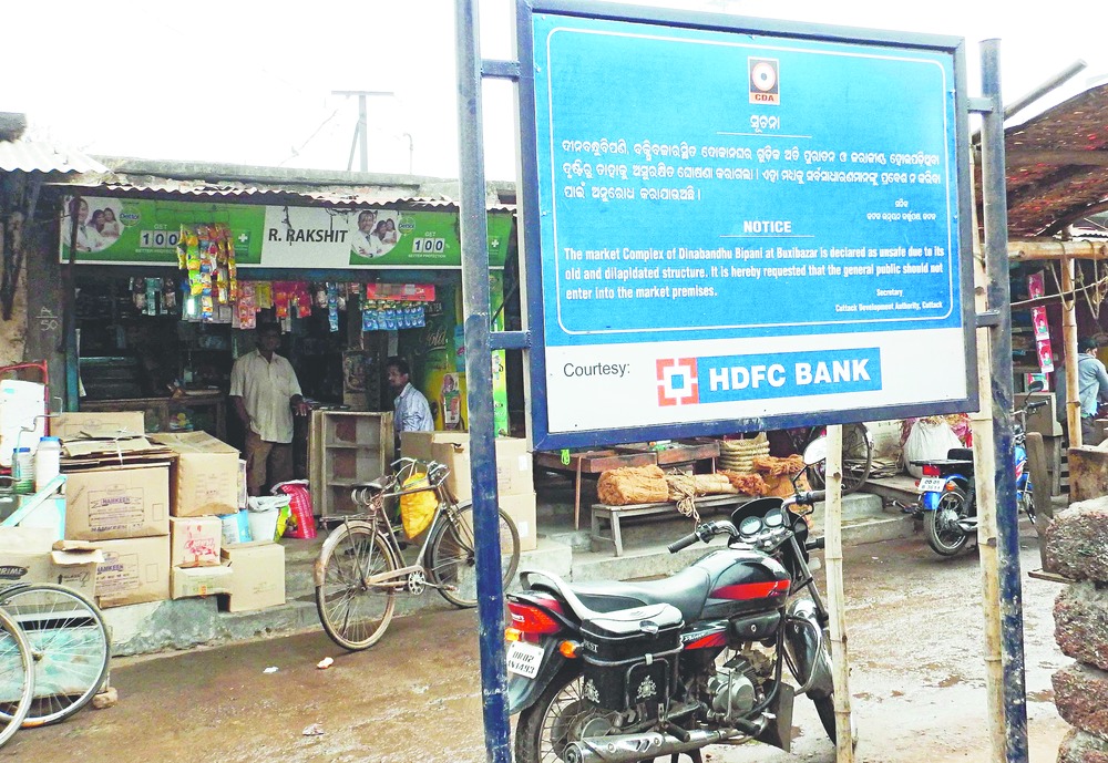 The Cuttack Development Authority has put up a notice, urging people not to enter the premises of the complex, one of the oldest commercial centres in the city. It put up the notice after the roads and buildings division of the public works department had carried out an inspection of the market complex in August.