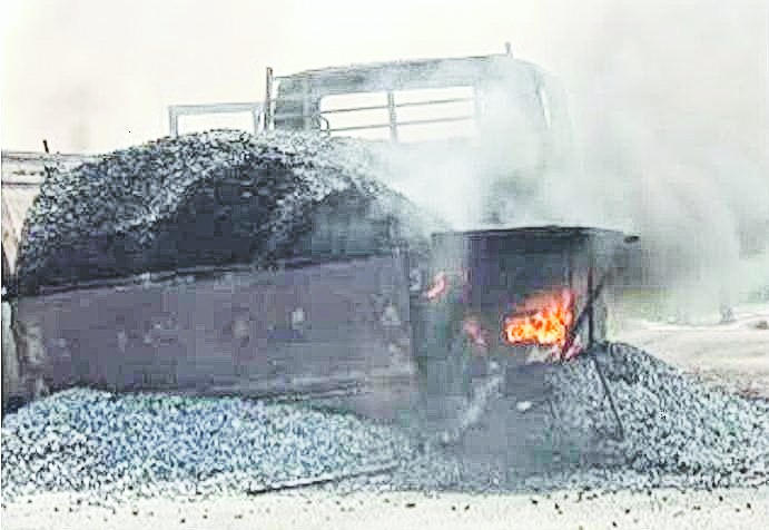 Following the accident, a mob set the stone-chips laden truck on fire and alleged that the ambulance arrived late.