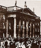 On Easter Monday (April 24, 1916), a motley group of rebels ? which included (among others) Patrick Pearse, a middle-class schoolmaster and poet, James Connolly, a hard-headed trade unionist, and Joseph Mary Plunkett, the delicate son of a Papal Count ? staged an armed rebellion in Dublin, at a time when the British state was preoccupied with World War I. Choosing as their headquarters the imposing GPO, Pearse, who was the moving spirit, read out a stirring proclamation of the Irish Republic, calling on the people to revolt in the name of the ?dead generations? of long resistance to British rule.