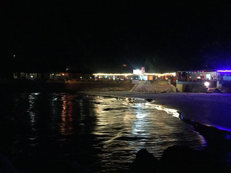 Forgetting about my phone's powerlessness, I whipped it out, switched to camera and went click, click, click. Some more click-clicking and the phone bid me a premature goodnight, refusing to come alive even at the sight of the dinner spread comprising wood-fired pizza, sumptuous fish steak and a prawn platter with a fancy and unpronounceable name. Gone too was the customary group picture at the entrance of the restaurant, jazzed up with disco lights against the vast sea, which was nothing more than a pitch-black wall spitting waves of water.