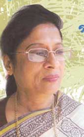 In one of her rare stage appearances these days, Sanghamitra Gupta represented all that is missing from Rabindrasangeet today. To use a tennis analogy, her singing is reminiscent of the subtlety and elegance of Steffi Graf in this age of power tennis. Note-perfect as always, her selection of songs — “Nibir megher chhaya”, “Eshechhinu dwarey tabo” and “Aay aay aay amader anganey” — emphasized the fact that Tagore’s repertoire of rain-songs is richer than the few oft-heard ones might lead us to believe. (Half-a-dozen songs were sung by two or more singers in this programme itself.)