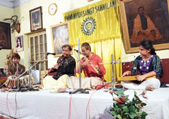 An evening of Indian classical music organized by Bhawanipur Sangeet Sammilani was like a breath of fresh air. The programme commenced with K. Bhuvaneswari’s violin recital, which was the debut concert of the artist from Bhubaneswar in Calcutta. She is an expert in both Hindustani and Carnatic styles and brought an uncommon flavour to the performance. Her first presentation was Raga Gorakh Kalyan and she played a madhyalay teentaal gat after an aochaar. Although the rapid shifts in the manner were a little confusing, she was able to attract the audience with a smooth blend of North Indian and South Indian techniques. Her efforts at presenting the taans were praiseworthy. She concluded with a brief presentation of Yaman gat in Rupak taal. She was perfectly accompanied by Ujjwal Bharati on tabla.