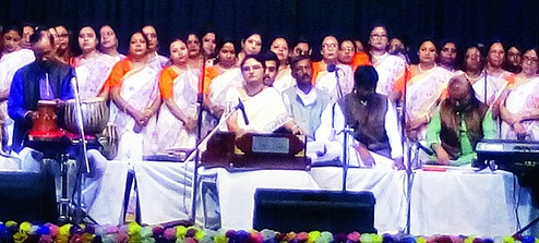 Back to the music. The group began with the traditional Yade Mee shloka followed by " Aguner poroshmoni" and "Anandaloke mangalaloke". The voices of the female chorus overpowered the male singers and the sound technician had clearly overlooked this aspect. The men strained to get themselves heard and failed in parts.