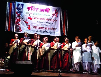 A framework of songs composed by the father and son, sung by Prabuddha Raha, Rina Dolon Bandyopadhyay, Suman Majumdar and Pradip Dutta, supported the script. Beginning with Debendranath's meditative " Paripurnam anandam" and moving towards "Tumi bina ke prabhu sankat nibare", it was a journey into a world of not-so-familiar songs.