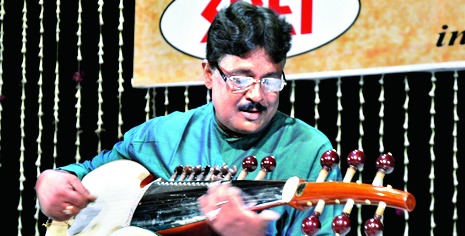 On the sarod, Debasish Bhattacharya (picture) began with a rendition of the Raga Chhaya. It was influenced by the Chhayanat phrases, because it has no well-defined attributes of its own. The alaap, jor and jhala were smooth, but lacked impact. The artist's next choice was the rarely-performed Maluha Kalyan. He tried his best to bring out its essence, although it was difficult for the audience to connect with the performance.