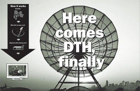 How much will DTH services cost? To get Doordarshan’s DTH, you need to invest in a dish and set-top box (approximate cost: Rs 3,000) and you can receive all the Doordarshan channels, several private news channels and at least 12 radio channels. Currently, Dish TV is offering the box and the dish for Rs 3,990 and a free one-year subscription to ramp up subscriber numbers. It’s not clear how much Tata Sky will charge, but a Tata Sons director had earlier said that the subscription fee could be about Rs 250 (roughly what cable operators charge in the metropolitan cities) for plain vanilla services and Rs 500 for premium services.