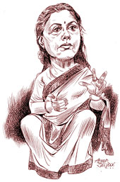 Most political observers believe that Jaya is not like other film stars in Parliament ? a group that includes such luminaries as Hema Malini and Govinda. She sits through all sessions, dons her stern-looking reading glasses and takes copious notes. “She is extremely hard-working,” says fellow SP Rajya Sabha member Shahid Siddiqui. “She insists on sitting through long sessions ? however boring they may be.”