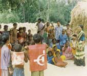 The rest of the film depicts their attempts to get out of the area, and the girl’s coming to terms with her desperate attempt to survive and her deep-rooted social prejudices, and the recognition by both of the essential bonding that one human being can have with another. Prime to the relationship — if one can call it that — between the two is the terror and need to survive in a place where hate and murder are all around them. It is that which brings them together and keeps them together. The girl sees that without Raja she cannot cope with the terrible situation in which she is trapped, and clings to him more for her own safety, and her child’s. That overcomes her prejudice — that he is Muslim — and even propriety, which had initially obliged Raja to sleep out in the open since the forest rest-house in which they had taken shelter had only one bedroom. When a mob chases a Muslim into the compound of the rest-house, Raja tries to push Meenakshi into the room and lock the door; she resists, and forcibly pulls him in and then locks the door. “If something happens to you”, she says, “what will happen to me and Santhanam?”