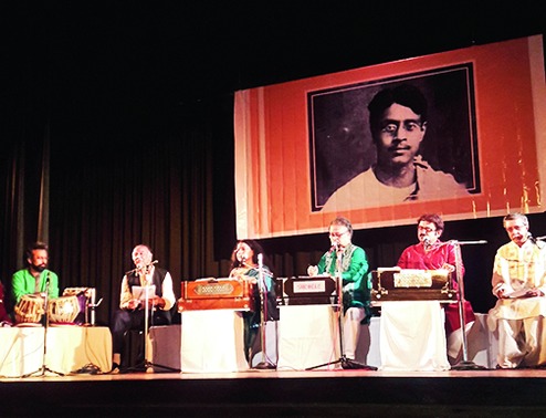 Every inch a Renaissance man like his father, Roy was an expert in illustration, printing and photography, a scholar of Brahmo philosophy, an initiator of many socio-political debates, a song writer and composer who was influenced by Tagore. In Rina Dolan Bandopadhyay's script, the many facets of Roy's vibrant personality and the profundity of his erudition were explored while also offering glimpses of his writing and music. If the narration was often marred by Aniruddha Rakshit's lugubrious rendering of some uproariously funny anecdotes, Barun Chanda kept his reading suitably breezy and charming. Songs written and composed by Ray, such as the meditative " Jago purobashi, bhagabot prem piyasi", "Premer mondire tar aroti baje", meant for wedding functions, and his reverential last composition in the Raga Bairagi, " Nomi satya sanatan", were performed by Rina Dolan Bandopadhyay and Pradip Dutta.