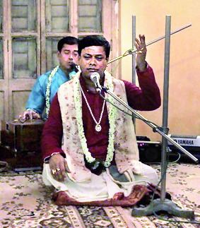Bengal is known as the birthplace of Kirtan. There are several kinds of Kirtan, such as pala kirtan, parvati and nam kirtan, among others. To celebrate the silver jubilee year of the Sutanuti Parishad, an evening of pala kirtan was organized at Madanmohontala Thakurbari, an apt location for such a programme. The performer was Suman Bhattacharya. The artist enthralled the audience with his brilliant tonal quality, profound knowledge, crisp implementation of notation and a deep understanding of the sahitya.