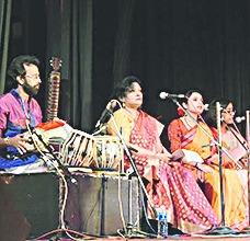 The accompaniments in vocal renditions were a high point of the entire presentation. Pritha Chattopadhyay was tuneful and her diction clear; her singing created the desired drama. Sohini Ghosh sang as well. The production, conceived and scripted by Surangama Lala Dasgupta and Pritha Chattopadhyay, was neat and earnest. The costumes could have been more elegant; further, the wastage of time in between performances for costume changes was unprofessional. The dance was choreographed by Lokeshwari Dasgupta. The other dancers were Debamita Gupta, Debaleena Chakraborty and Bedaprana Roy. Siuli Bose on the esraj added valuable support.
