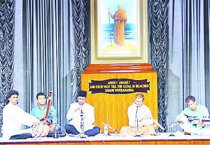 The Ramakrishna Mission Institute of Culture, in association with Jalshaghar, presented Triveni, in memory of the shehnai player, Ali Ahmed Hussain Khan, who passed away recently. A combination of shehnai, flute and sarod was presented by Hassan Haider Ali Khan (son of Ali Ahmed Hussain Khan), Sudip Chattopadhyay and Kaushik Mukherjee. They started with the perfect evening raga, Yaman, and continued with a beautiful gat after an aochar.