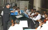 They began with the Arrival of the Queen of Sheba by Handel. The commencement was precise, and proceeded at a rather careful pace to its rhythmic end. Vivaldi’s Concerto in A Minor for two violins featured Phiroze Mistry and Sanjib Mondal as soloists. A disciplined performance with a vigorous entry, so typically Vivaldi; the playing was balanced and neatly executed with elegant diminuendo finales.