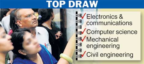 He could well have been a student in the aquatint reproduced here of a pathshala in session by the Flemish artist, Francois Balthazar Solvyns (1760-1824), who lived in Calcutta between 1791 and 1803. It shows the gurumohashay brandishing his rattan cane at the boy in the front, who cringes slightly. The students are seated in a haphazard manner — and the one with covered head is a girl, perhaps the daughter of the householder in whose home the class was being held. The three figures in front are particularly interesting. The boy to the left is writing, while the two young men are reading. In fact, it appears to be a class with a wide age range as the boy being admonished, as well as these two, appear considerably older than the others. The class, though small, seems to have three discrete groups — the girl and the boy facing her are one, the older group with the boy sitting separately another, and that which seems to have the maximum attention from the gurumohashay is the one physically closest to him. Behind the thatch-and-brick hut is a fairly solid-looking building, perhaps the one in which the host family lived. The air of unstructured informality ties in with the stereotype of the gurumohashay — often the butt of some less-than-innocent barbs — who was more intent on the fate of his chillum rather than that of his students. Solvyns, who made several prints together with descriptive texts of the Bengali people, had captured well the atmosphere of early learning, its lackadaisical pace and general disorganization. (His visual and documentary interest in the ethnographic was a precursor to The People of India photographic project initiated by Lord Canning in 1858).
