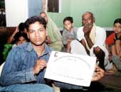 | TRUE LIES: The 17-year-old holds up the controversial certificate as his family looks on pic: rajesh kumar |