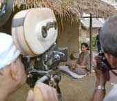 There is a dramatic change in their lives when they arrive at Anjangarh, owned by a well-to-do family of Thakurs who live in a sprawling haveli, divided into parts to house different kinsmen. The head lives by himself and is rarely seen. His wife, the malkin, presides over feeding arrangements and children’s welfare, and is know to them as Badi Ma. She lost her only son, Ashok, when he was only seven. Her husband’s younger brother, the only one who went to college briefly, is more interested in singing and dancing and is probably gay. He allows the bioscopewallahs to set up their show. He visits it and invites Durga to the haveli — not to make love to her but to practice dancing. The bioscopewallahs are asked to move into the haveli. Badi Ma persuades them to give their Ashok to her in adoption for a tidy sum of money. Hari and Durga move to the film-capital, Bombay. She takes on a new name, Bhuvaneshwari. They run into another pair of would-be film-makers: Salim Lahori, son of a Muslim prostitute in Lahori Gate, Delhi, and her husband, a Maulvi Sahib. They acquire a studio, a few hours drive from Bombay, and get down to filming Aakhri Raat.