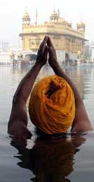 Travelling through the state, listening to people and seeing the signs around, it was hard to imagine that just a decade previously the Punjab countryside was in the grip of a veritable reign of terror, imposed jointly by Khalistani terrorists and a trigger-happy police. When one finally reached Amritsar, and entered the Golden Temple, one had, once more, to forcibly remind oneself that this was where a bloody battle was fought a mere twenty years ago. For the temple is as exquisitely tranquil as a place of worship should be; spotlessly clean, with orderly queues of pilgrims whose eyes shine with devotion, and wafts of fine music coming in from the great golden dome in the middle.