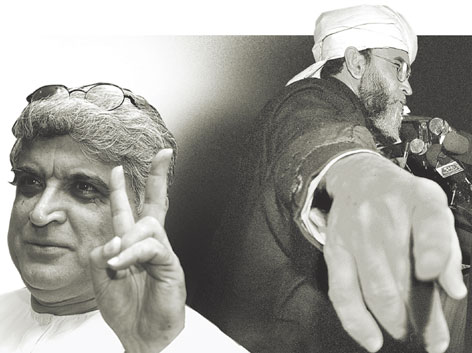 | Cross purposes: Javed Akhtar (left); Muslim cleric Syed Ahmed Bukhari |
