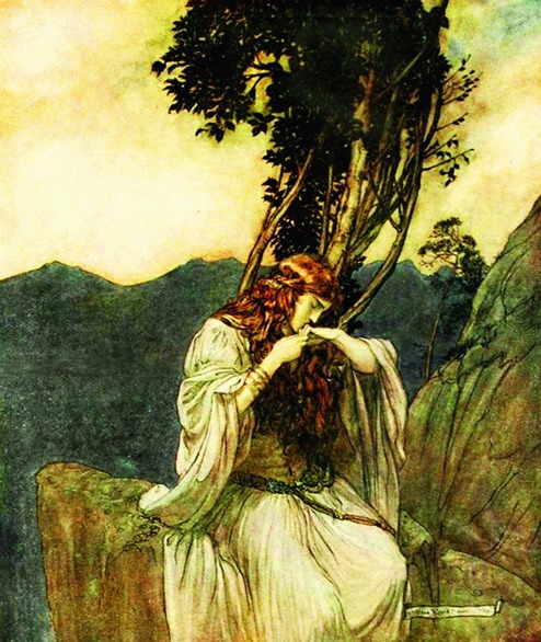 Even innocence does not always help. In the multiple retellings of the Siegfried myth from the Thidreks Saga to Ibsen and Wagner, Brünnehilde (picture left) keeps on loving the man who was either Siegfried or Siegfried pretending to be Gunnar. Were there two rings or one? Were they exchanged or taken? Siegfried, who marries Gutrun, Gunnar's sister, either does not care about Brünnehilde, or forgets her under a spell — a recurrent motif. Gutrun's display of Brünnehilde's ring on her own finger leads to tragedy. Why do men keep giving other women rings of the women they have raped or lost?