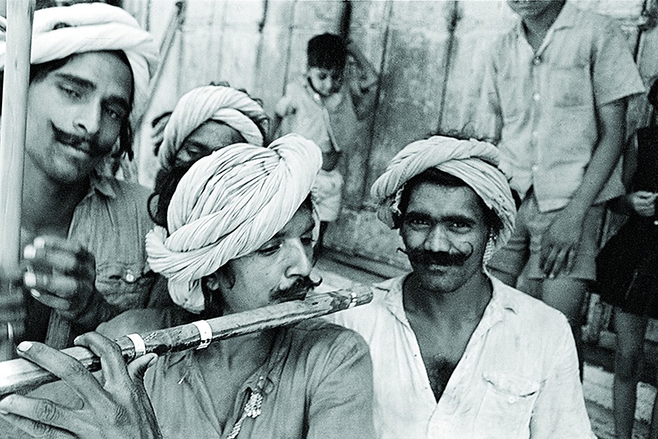 Bhatt's matter-of-fact attitude, notwithstanding, the lyricism of the graceful Kutchi women going to fetch water, and the elegance and dignity of the turbaned flute players (picture) and of the naked legs of three men in a market cannot be overlooked. This is the lost world of Gujarat that all its prosperity cannot recall.