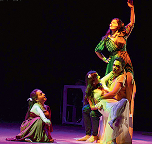 Kolkata Rangila takes Ma Ek Nirbhik Sainik from the novella of the same name by Sailen Ghosh, the popular children's author. Koushik Kar's dramatization, however, makes it as diametrically opposed to children's or young adult literature as possible. With scenes of unremitting cruelty and carnage, he presents a primitive war between rival kings on what seems like an imaginary recreation of the central Asian steppes. Reminiscent of Gorky's Mother, it draws a heroic picture of the eponymous protagonist (Ankita Majhi) trying to instil love in her son to protect him from the cult of violence. Kar's loud direction encourages nearly everyone to scream their lungs out, like schoolkids who think that shouting means acting. But Biswajit Das designs a robust set with a wooden bridge over a half-hidden hut.