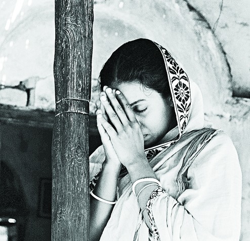 Sometimes, the joy is tinged with tears. To watch, even if for the hundredth time, in Satyajit Ray's Pather Panchali, Sarbajaya (Karuna Banerjee) do a namaskar to the Fates as Harihar (Kanu Banerjee) leaves the village, is to hear the stars sob. To see Balasarasvati render " Krishna nee begane baro" is, in Blake's words, to see the stars "[throw] down their spears". There is in those chinna chinna moments a plangent happiness.