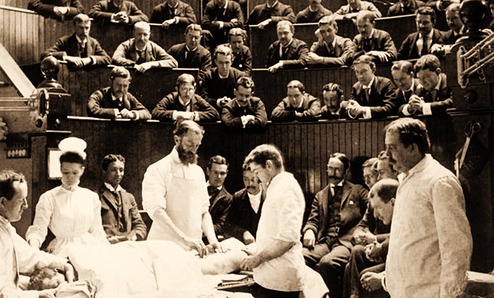 A surgical demonstration at the old operating theatre of St. Thomas’s Hospital of 1822