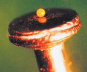 | On a pin head: Micro-sphere of a melt-in-the-mouth version of the painkiller Ibuprofen launched five years ago in the UK |