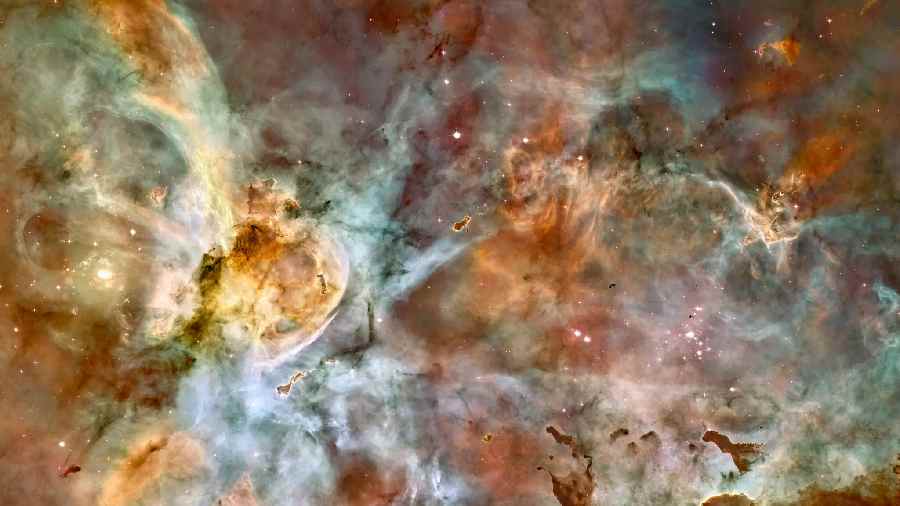 The Carina Nebula, one of the largest and brightest nebulae in the sky, located approximately 7,600 light-years away, is a nursery for new stars.