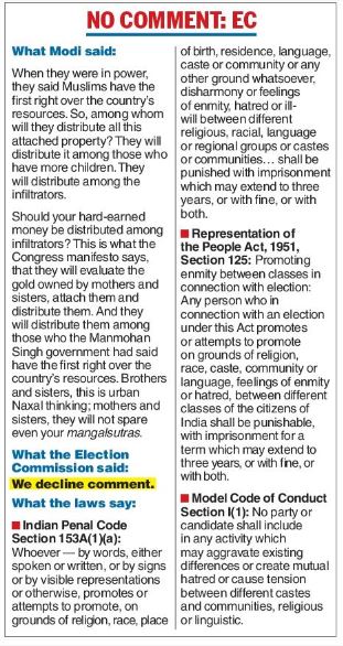 One of them, Guwahati-based Paresh Malakar, told The Telegraph: “We have sent a petition to the ECI (Election Commission of India) seeking appropriate action against PM Modi for his divisive speech in Rajasthan yesterday. It is very unfortunate, unbecoming of a person holding the PM’s chair.”