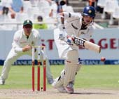 | Sourav Ganguly in action on Day IV of the third and final Test against South Africa in Cape Town on Friday. (AFP) Report, scorecard on Page 10 |