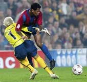 The Catalans hit back with a Thiago Motta strike on the break and a comeback looked on the cards when Valencia ’keeper Santiago Canizares was sent off for bringing down Patrick Kluivert outside the box a couple of minutes before half-time.