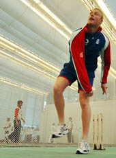 | Andrew Flintoff during practice at Lord’s on Tuesday. England take on Bangladesh in the first Test beginning Thursday. (AFP) |