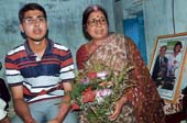 | Jhulan Goswami’s mother and brother in Chakdah on Tuesday. A Telegraph picture |