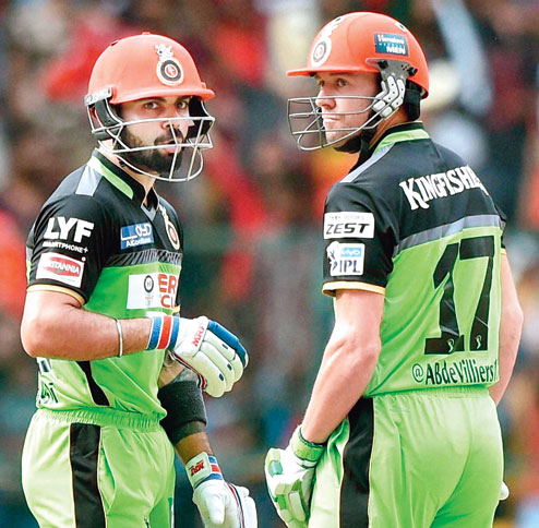 Batting first, the RCB plundered a massive 248 for three, thanks to De Villiers's 129 not out and an equally attractive 108 by Kohli with records falling like ninepins. Kohli also became the first player to score three centuries in an IPL season and two against the same opponents in one edition.