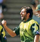 | Shahid Afridi celebrates after dismissing Australia’s Andrew Symonds in their World Twenty20 match |