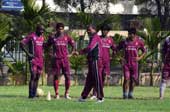 | Mohun Bagan coach Jahar Das with his team at Salt Lake on Wednesday. Picture by Santosh Ghosh |