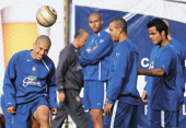 | Brazil captain Alex (left) and teammmates during a practice session in Lima on Thursday. (AP) |