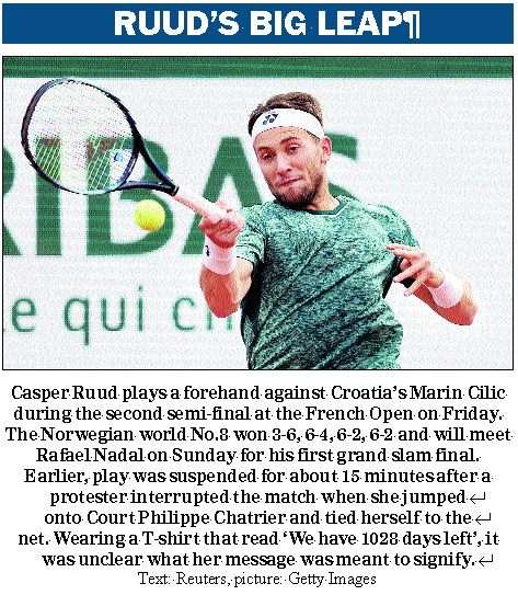 The fifth seed, who turned 36 on Friday, is aiming to win his 14th Roland Garros crown and a record-extending 22nd grand slam title.